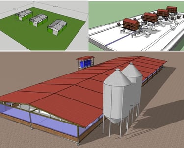 En esta etapa se define la estructura y distribución de la nave, tomando en cuenta factores como ventilación, iluminación, aislamiento térmico y flujo de trabajo. El diseño busca garantizar eficiencia productiva y bienestar animal.